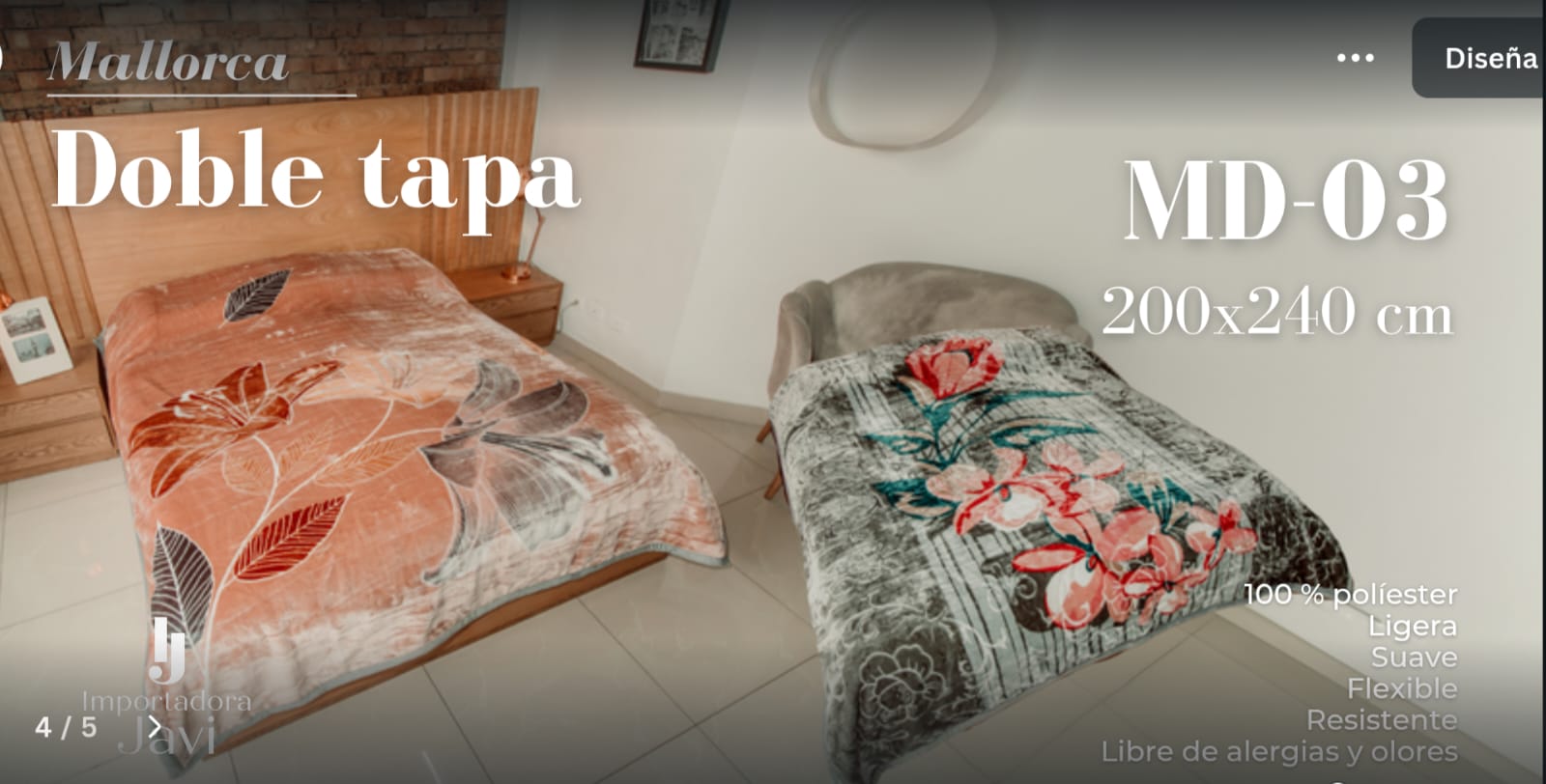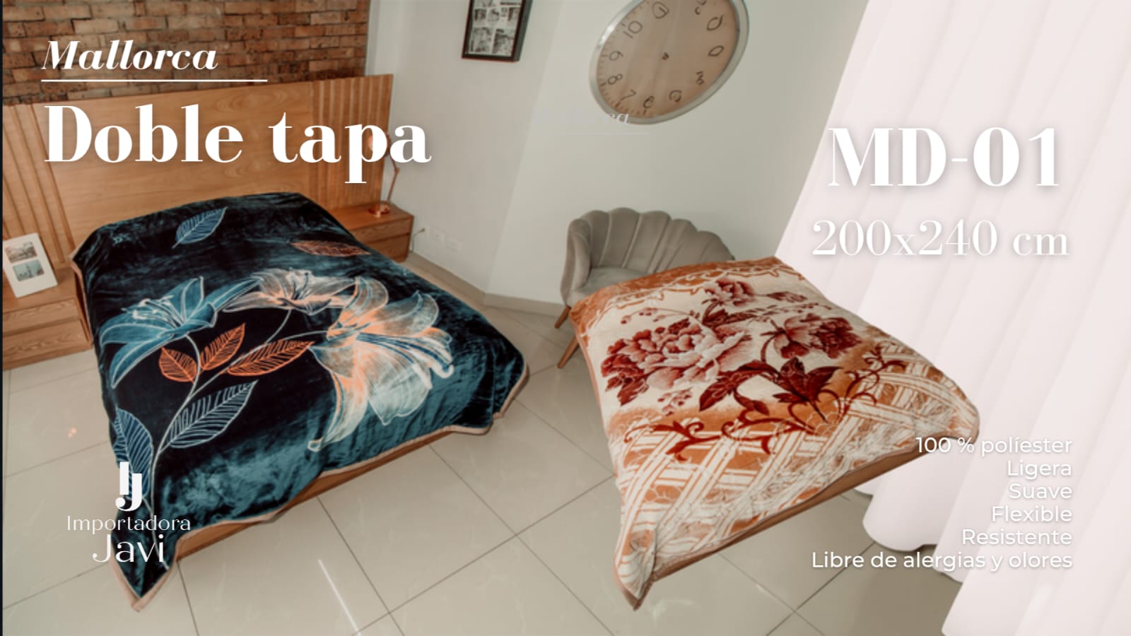 La Cobija Doble Tapa Javi 200×240 cm ofrece calidez, suavidad y elegancia en una sola pieza. Su diseño de doble capa brinda un abrigo superior, ideal para las noches frías, mientras que su textura aterciopelada garantiza una sensación de confort inigualable. Perfecta para complementar la decoración de tu habitación y disfrutar de un descanso acogedor.