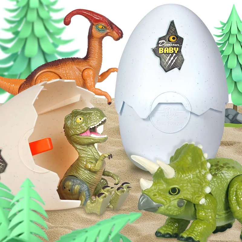 🥚 Incubación interactiva: el huevo simula una eclosión cuando se activa, haciendo saltar la sorpresa dinosauria.