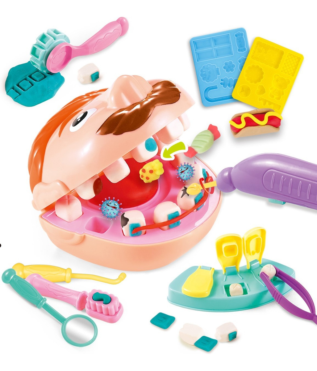 Con el Juego de Plastilina Odontólogo Ref. B146689, los niños pueden explorar el mundo de la odontología mientras se divierten creando figuras con plastilina. Este set combina masas de colores con herramientas inspiradas en un consultorio dental: pueden moldear dientes, “extraer” caries, rellenar cavidades y simular brackets. Es una forma entretenida y educativa de aprender sobre el cuidado dental y desarrollar la creatividad y la motricidad fina. Perfecto para juegos de rol o momentos creativos en familia.