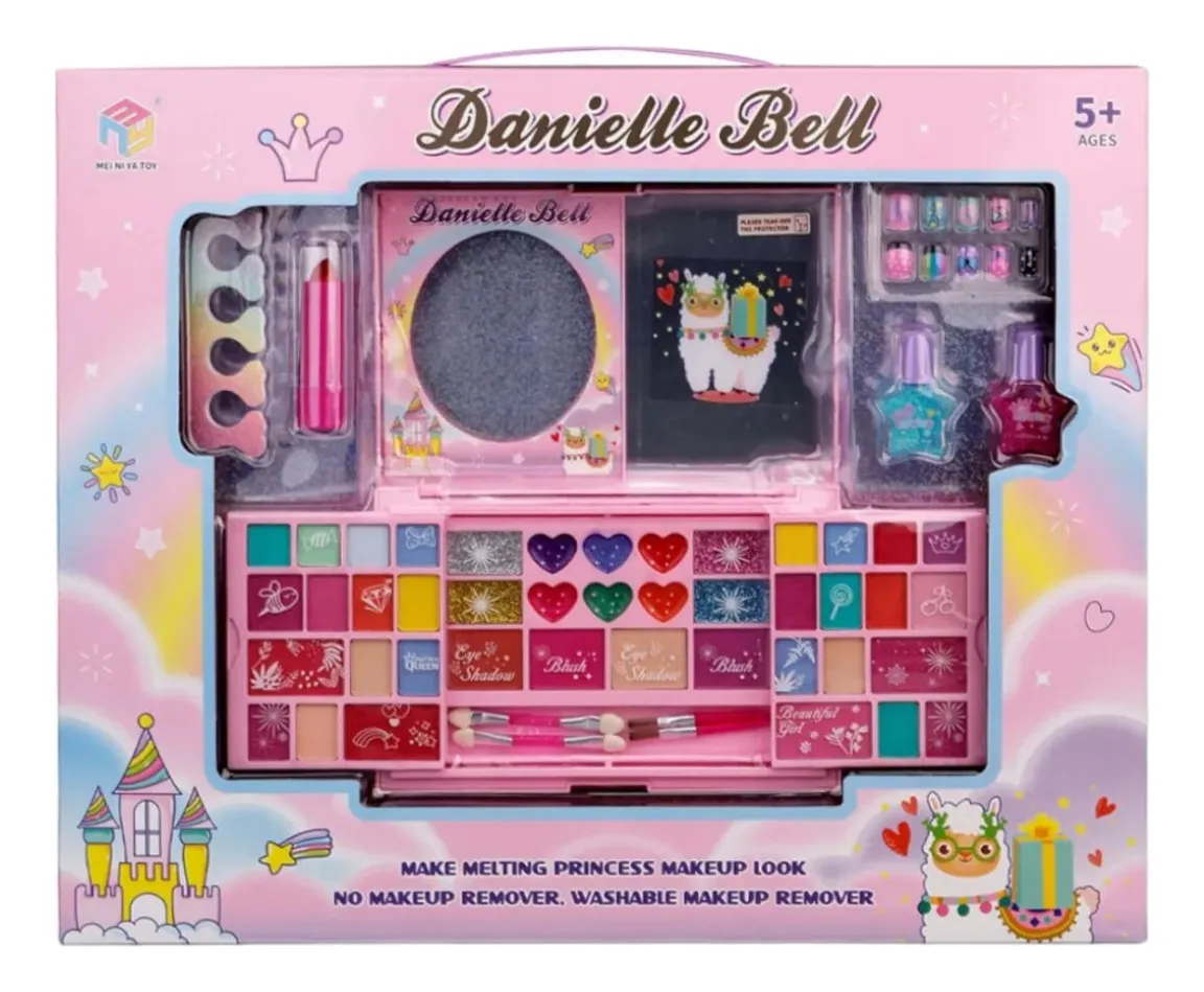 💄 Set completo de maquillaje infantil: incluye sombras de colores, rubores, brillos labiales, esmaltes y sombras con glitter
